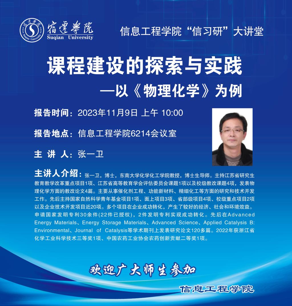 信息工程学院“信习研”大讲堂:课程建设的探索与实践一以《物理化学》为例