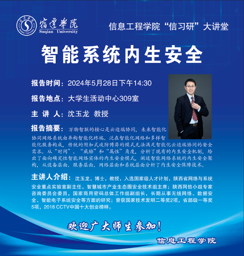 信息工程学院“信习研”大讲堂之沈玉龙、杨卫东教授讲座