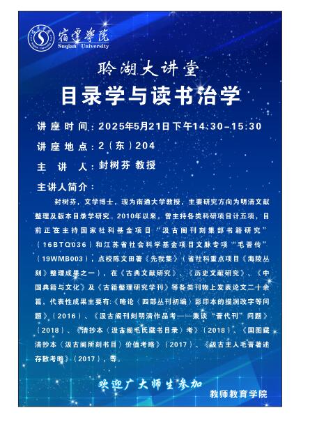 教师教育学院开展聆湖大讲堂--目录学与读书治学